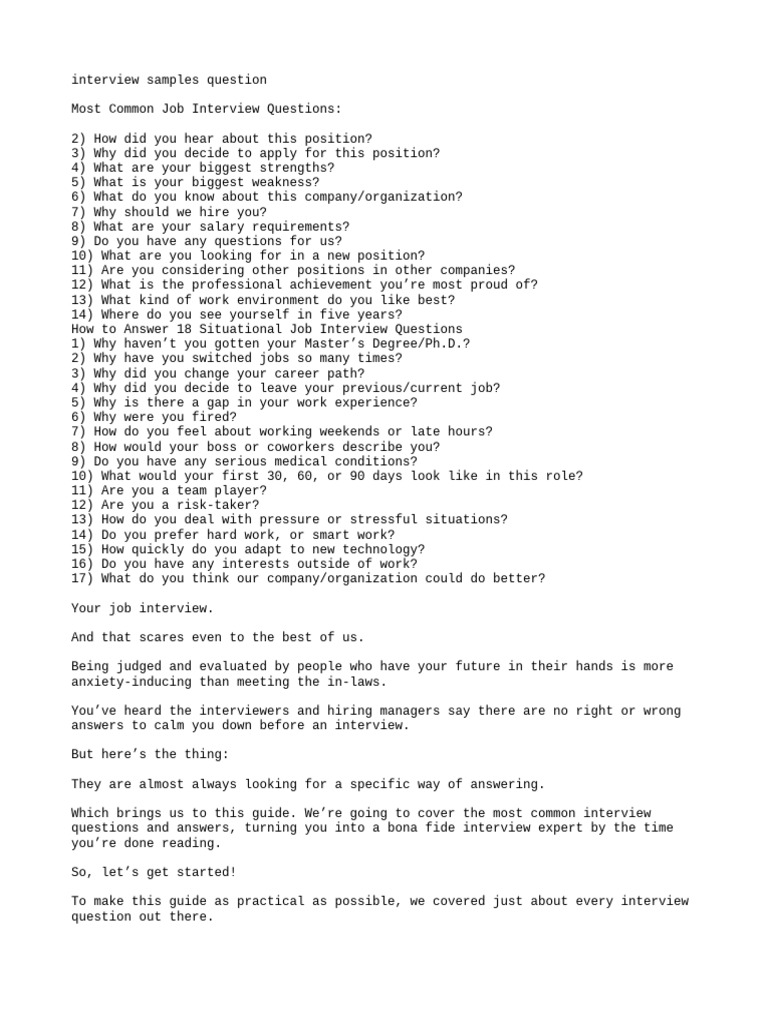 Most Common Job Interview Questions PDF Job Interview Psychology